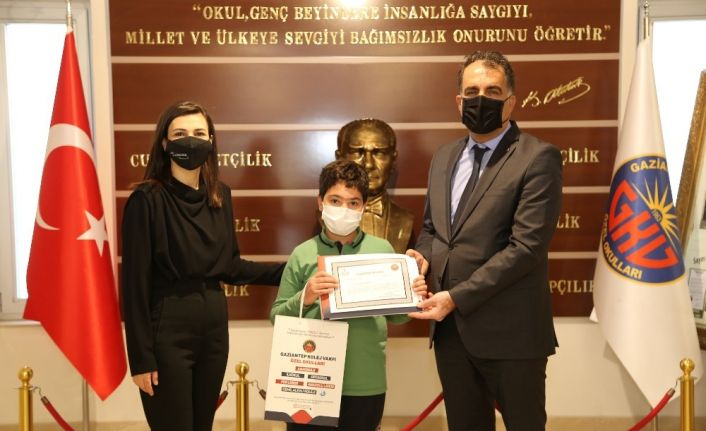 Eğitim alanındaki öncülüğünü 57 yıldır sürdüren Gaziantep Kolej Vakfı Özel Okulları yabancı dil öğretimindeki farkındalığıyla da dikkat çekmeye devam ediyor. Öğrencilerin yabancı dil öğrenmesi, bu alandaki yayınları okuyup anlaması ve okumayı alışkanlık haline getirebilmesi için Gaziantep Kolej Vakfı Özel Okulları bir birinden farklı etkinliklerle öğrencilerin bu alanda ki deneyimlerini arttırma yönünde önemli başarılara imza atıyor. GKV Özel İlkokulu ve Ortaokulu öğrencilerine yönelik olarak düzenlenen Raz-Plus Foto Albüm Yarışması sonuçlandı. Yarışmada dereceye giren öğrenciler GKV Özel Okulları Genel Müdürü İsmet Tiryaki ve GKV Özel Okulları Yabancı Diller Bölüm Başkanı Selin Yaman tarafından ödüllendirildi. GKV Özel Okulları Genel Müdürü İsmet Tiryaki başarılı öğrencileri kutlayarak bundan sonraki yaşamlarında da edindikleri deneyimleri geliştirerek hayatlarına başarı olarak yansıtmalarını dilediğini ifade etti.