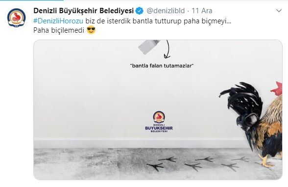 Belediyenin sosyal medya hesabından yaptığı paylaşımda ‘Bantla falan tutamazlar’ yazısı ile yürüyen horoz fotoğrafı ile çok sayıda yorum aldı. Denizli Büyükşehir Belediyesi yaptığı paylaşımda Denizli horozu etiketi ile “Biz de isterdik bantla tutturup paha biçmeyi paha biçilemedi” paylaşımını yaptı. Kahramanmaraş’ın Elbistan Belediyesi ise Denizli’nin paylaşımına "Bantlayamadık ama kucakladık" şeklinde kucağında lahana tutan bir vatandaşlı fotoğraf ile gönderme yaptı. Sosyal medya kullanıcılarının da büyük beğenisi kazandı. Paylaşıma çok sayıda sosyal medya kullanıcısı farklı sosyal paylaşım platformlarında da paylaştı.
