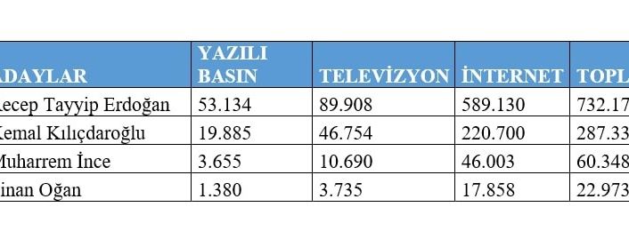 Cumhurbaşkanı adaylarının medya karnesi belli oldu