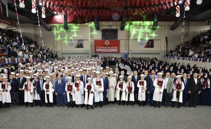 Burada konuşan Diyanet İşleri Başkanı Ali Erbaş, "En hayırlıların bulunduğu mekandayız. Kur’an’ı öğrenenler, öğretenler ve hafızlarımız burada. Farkında mısınız? Şuan da melekler yukarıda kanatlarını germişler, bizim için sağanak sağanak rahmet yağdırıyorlar. Hayırlı uğurlu olsun. Mücadelemizi Kur’an’ın yolunda yapıyoruz. Resulullah’ın yolunda mücadelemizi veriyoruz. Çünkü Resulullah’ın bize müjdesi, emaneti, vasiyeti var. O’nun vasiyetini yerine getiriyoruz. Peygamber Efendimiz Veda Hutbesi’nde ’Size iki şeyi emanet bıraktım. Bu iki şeye sarıldığınız sürece yolunuzu şaşırmazsınız. Bunlardan birisi Allah’ın kitabı diğeri de Resul’ünün sünneti’ buyuruyor. İşte Ya Resulullah, senin ümmetin olarak bu vasiyetine uyuyoruz, vasiyetini yerine getirmeye çalışıyoruz. İşte burada ümmetinin bir bölümü. 500’e yakın ümmetinin gençleri senin vasiyetini yerine getirdi" ifadelerini kullandı.