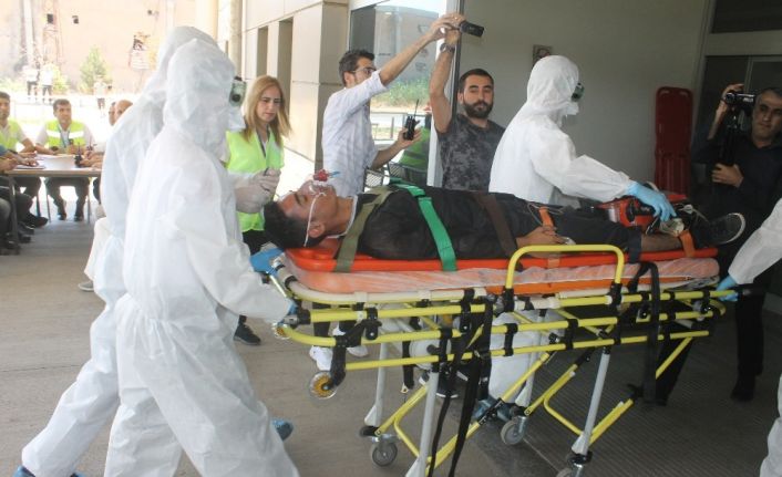 Bismil Devlet Hastanesi’nde gerçekleşen tatbikatta senaryo gereği Batman’dan Diyarbakır’a gitmekte olan sıvılaştırılmış klor varilleri ile yüklü kamyon, Bismil Üçtepe mevkiinde şoförün direksiyon hakimiyetini kaybetmesi ile kontrolden çıkarak yan yattı. Büyük bir gürültüyle birlikte devrilen kamyondan etrafa saçılan varillerden gaz sızıntısı meydana geldi. Olayı gören bir vatandaş olay mahalline gidip yaralıyı kurtarmaya çalıştı. Durumu fark eden vatandaşlar 112 komuta merkezine ihbarda bulundu. Bismil Devlet Hastanesine biri ayaktan bir de 112 ekipleri tarafından olmak üzere iki hasta getirildi.
