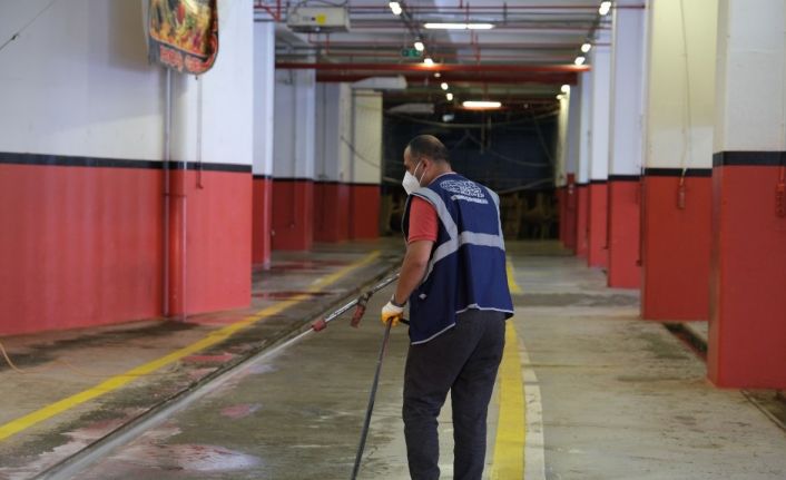 Esenyurt Belediyesi kurban bayramı nedeniyle kurban kesim alanlarında böcek ve haşerelere karşı dezenfekte çalışması gerçekleştirerek kapalı pazarları tazyikli suyla temizledi.