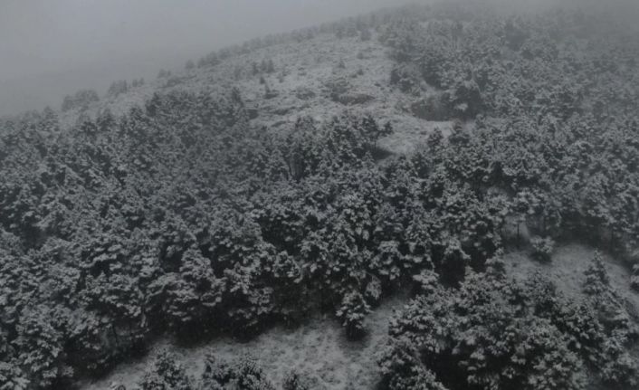 Kar yağışı öğle saatlerinden itibaren başladı. Aydos Ormanı’nın karla kaplı manzarası gözler önüne serildi.
