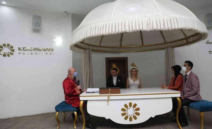 Kayseri’de 02.02.2022 tarihinde dünya evine girmek isteyen çiftler, nikah salonlarında yoğunluk oluşturdu.