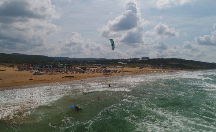 İstanbul’da rüzgarı eğlenceye çeviren uçurtma sörfü yapan sporcular, Kilyos sahilinde dalgaların tadını doyasıya çıkardı. Keskin hareketleri ile denizin üstünde adeta dans edercesine sörf yapan sporcuların şovları büyük ilgi gördü. Havadan çekilen görüntülerde ise sporcuların ne kadar yükseğe çıkabildikleri gözler önüne serildi. Zaman zaman dalgalarla boğuşan sörfçüler, denizde hünerlerini sergiledi.