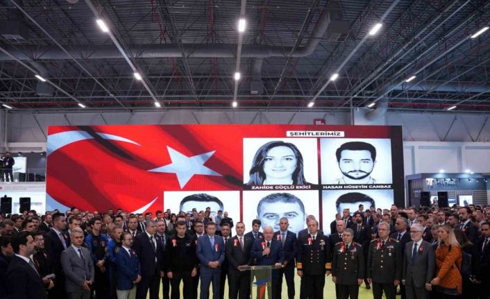 Türk Havacılık ve Uzay Sanayii Anonim Şirketi’nin (TUSAŞ) dün Ankara’nın Kahramankazan ilçesindeki tesislerine yönelik terör saldırısı gerçekleştirilmişti. Saldırıda TUSAŞ’da kalite kontrol görevlisi olarak görev yapan Cengiz Çoşkun, Makine Mühendisi Zahide Güçlü, TUSAŞ çalışanı Hasan Hüseyin Canbaz, Güvenlik görevlisi Atakan Şahin Erdoğan ile taksi şoförü Murat Aslan şehit olmuştu. Bugün Uluslararası Savunma, Havacılık ve Uzay Sanayi Fuarı SAHA EXPO’da TUSAŞ standına dev platform kurularak şehitlerin fotoğrafları yansıtıldı. Ayrıca fuar alanında bulunan led akranlara da Türk bayrakları konuldu.