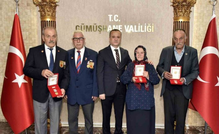 Gümüşhane’de 3 Kıbrıs gazisine daha KKTC tarafından gönderilen Milli Mücadele Madalyası ve beratları düzenlenen törenle Vali Kamuran Taşbilek tarafından verildi.