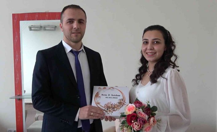 Daha kolay ve hatırlanır bir tarih olması için bugünü seçtiklerini ifade eden Azizhan Çakmak ise, "Nikah tarihine baktığımda ’02.02.2022’ tarihini gördüğümüzde bize daha anı hatıra kalır diye bugünü özellikle seçtik. Nişanlımın memleketi olduğu için burada yapıyoruz nikahımızı. 15 gün önce evlenme kararı aldık. Bu kararı aldıktan sonra nikah tarihi alma kararı aldık bize hangi tarih uygun olur diye. Tarihe baktığımızda ’02.20.2022’ tarihini gördük. Bu tarihinde bize özel, daha unutulmaz olacağını düşündüğümüz için bu tarihi seçtik. Geldik ve yerimizi de bulduk" diye konuştu.