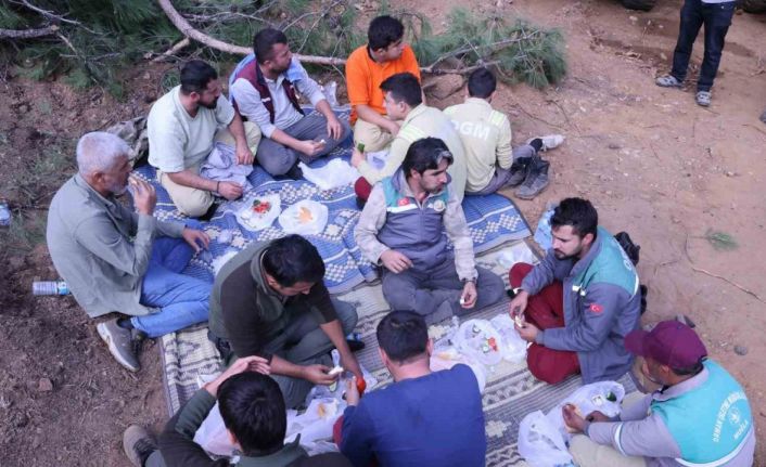 Gökova Körfezi Turnalı bölgesinde başlayan yangının söndürme çalışmaları üçüncü güne girerken, gündüz sarp kayalıklarda yer yer yükselen dumanlara sadece havadan müdahale edilebiliyor. Gökova Körfezi’ne hakim tepelerde kayalıklarda devam eden yangına gece boyunca aralıksız müdahale eden ateş savaşçıları ise alevlerin önlenmesi için yoğun çaba sarf etti. Kıran ve Sarnıç mahallerinin kesiştiği noktada etkin müdahale gerçekleştiren ekipler, alevlerin diğer bölgelere sıçramasını önleyerek, önünü kesmeyi başardı. Sabahın ilk ışıklarına kadar aralıksız mücadele eden ateş savaşçıları, günün ağarması ve havadan müdahalenin başlamasıyla sabah saatlerinde kısa bir kahvaltı molası verdi. Alevlerin önünü kestikleri bölgede mola veren ekiplerin, mütevazi kahvaltısı ise dikkat çekti. Yanlarında bulunan domates, peynir ve salatalıklardan oluşan bir kahvaltı yapan ateş savaşçılarının fedakarlıkları ise takdir topladı. Bölgede havadan ve karadan söndürme çalışmaları hız kesmeden sürüyor.