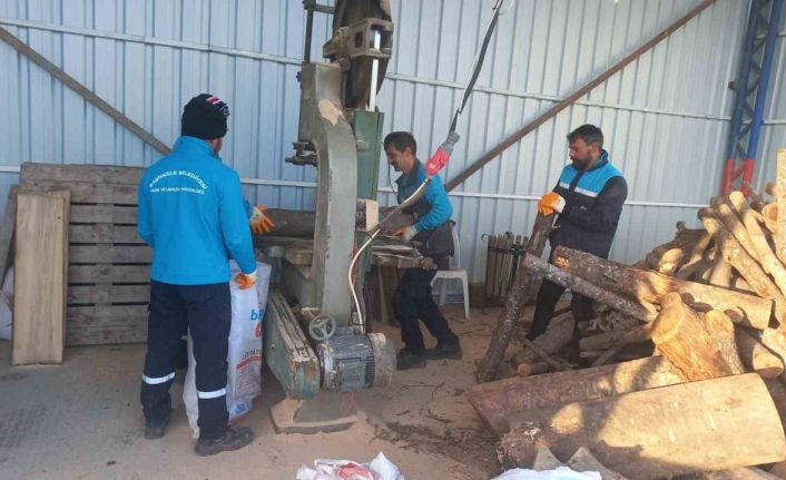 Başiskele Belediyesi, budama çalışmalarından elde edilen dalları, devrilen ve kuruyan ağaçları vatandaşa sosyal yardım olarak sunuyor.