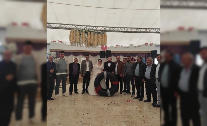 Kastamonu’nun Taşköprü ilçesinde tır şoförlüğü yapan Uğur Duman, Reyhan Duman ile düzenlenen düğün töreninde dünya evine girdi. Düğündeki takı merasiminde Uğur Duman arkadaşlarının takı olarak verdikleri hediye ise yüzleri güldürdü. Uğur Duman’ın arkadaşları, satın aldıkları tır lastiğini yuvarlayarak düğün salonuna getirerek çifte hediye etti.