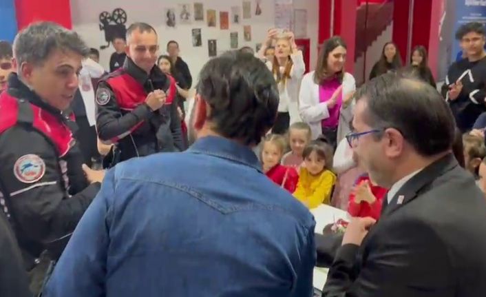 Erzurum’da özel bir kolejin öğrencileri kavga ihbarı ile çağırdıkları polis ekiplerine sürpriz kutlama yaptı.