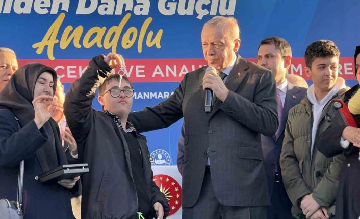 Cumhurbaşkanı Recep Tayyip Erdoğan, 6 Şubat depremlerinin merkez üssü Kahramanmaraş’ta TOKİ tarafından depremzedelere yönelik inşa edilen 155 bininci konutun anahtar teslimi ve kura çekimi için havayoluyla Kahramanmaraş’a geldi. Merkez Spor Kompleksi’nin bahçesinde düzenlenen tören sonunda Erdoğan, Kahramanmaraş’ta 3 bin 499 konutun anahtarlarını kura ile hak sahiplerine teslim etti. Cumhurbaşkanı’nın elinden evlerinin anahtarlarını alan depremzede vatandaşlar büyük mutluluk yaşadı.
