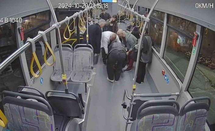 Sakarya Büyükşehir Belediyesi’nin şoförü, sefer sırasında otobüste fenalaşan kişiyi güzergahını değiştirip hastaneye yetiştirdi. Şoförün, güzergahı hastaneye çevirdiği ve yolcuların fenalaşan yolcuya müdahale ettiği anlar araç içi kamerası tarafından saniye saniye kaydedildi.
