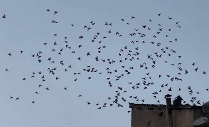 Baharın müjdecisi olarak bilinen sığırcık kuşları, Yüksekova semalarında adeta görsel şölen sundu.