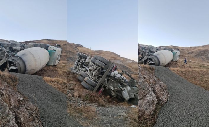 Hakkari’de geri manevraya yapan beton mikseri devrilirken, sürücüsü ise araçtan atlayarak yara almadan kurtuldu.