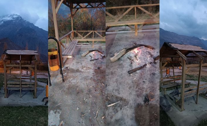HAKKARİ (İHA) – Hakkari’de vatandaşların oturup dinlenmeleri, sohbet edip piknik yapmaları amacıyla oluşturulan parka konulan kamelya, kimliği belirsiz kişi ya da kişiler tarafından yakılarak kullanılamaz hale getirildi.