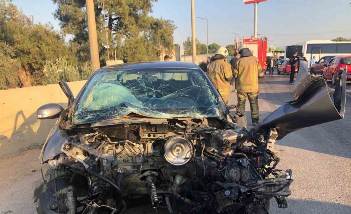İzmir’de servis minibüsüyle otomobil kafa kafaya çarpıştı: 1 yaralı