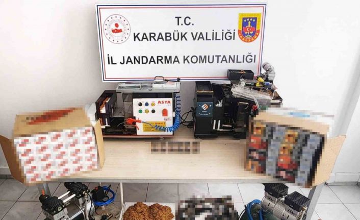 Edinilen bilgiye göre, Karabük İl Jandarma Komutanlığı ekipleri, Yeşil Mahalle’de Y.S.’nin (39) işletmeciliğini yaptığı iş yerinde ve S.S.’nin (41) ikametinde yaptıkları aramada, iki adet makaron sigara doldurma makinesi, iki adet kompresör makinesi, 3 bin 175 adet içi tütün dolu makaron sigara, bin 100 adet kilitli şeffaf poşet ve 5 bin 480 adet boş makaron ele geçirdi.