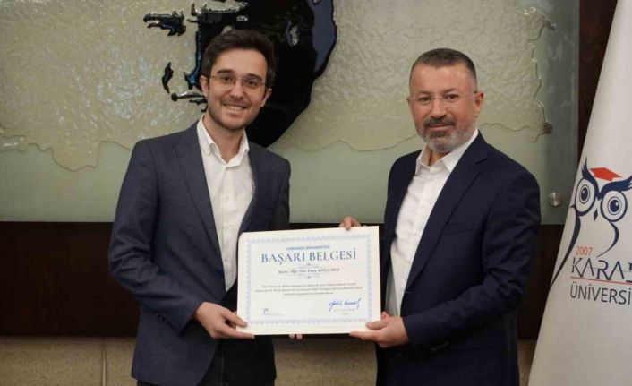 Karabük Üniversitesi Rektörü Prof Dr. Fatih Kırışık anatomi alanının Türkiye Birincisi ile En İyi Tez Ödüllü Akademisyen’e ödül verdi.