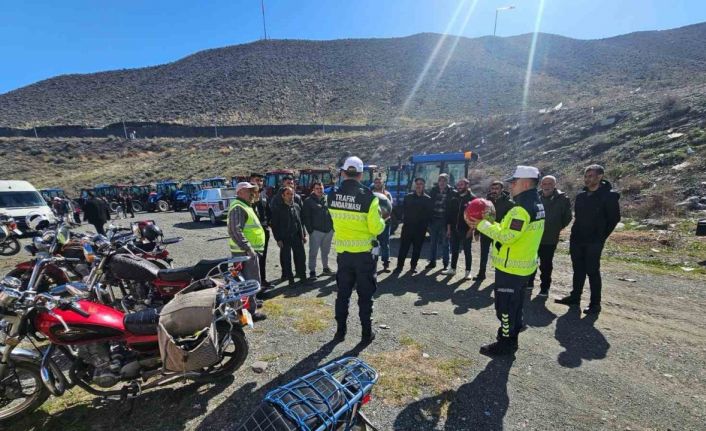 Kars’ta İl Jandarma Komutanlığı trafik ekipleri Kağızman Araç Muayene İstasyonu’nda muayene sırası bekleyen motosiklet sürücülerine motosiklet kaza durumu, kazalarda yapılan hatalar, virajlara düşük hızla girilmesi, takip mesafe kuralları, kask ve özel tertibat kullanımı gibi hayati önem taşıyan konularda bilgilendirme yaparak dikkatli olmaları konusunda uyardı.