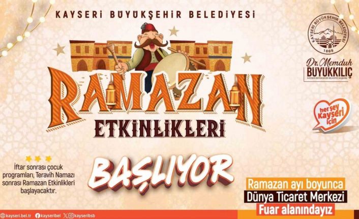 Kayseri Büyükşehir Belediyesi, Ramazan ayında vatandaşlara unutulmaz anlar yaşatmak için birbirinden özel etkinlikler düzenleyecek. Büyükşehir Belediyesi Ramazan Etkinlikleri kapsamında gerçekleşecek olan programlarda konserler, sohbetler, çocuk etkinlikleri ve kültürel gösteriler yer alacak.
