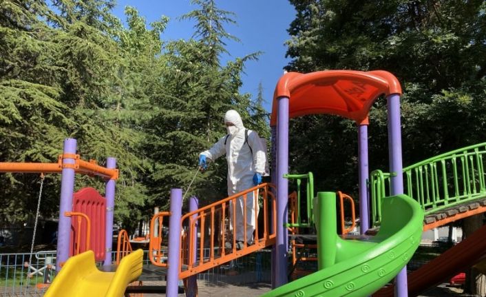 Melikgazi Belediye Başkanı Doç. Dr. Mustafa Palancıoğlu, çocukların daha steril alanlarda, güvenle oyun oynamaları için, parklardaki oyun alanlarının dezenfekte edildiğini söyledi.