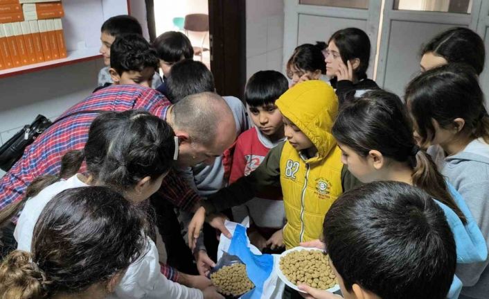 Hatip Ortaokulunda öğrenciler, sokak sokak gezip sokak hayvanlarını besliyor.