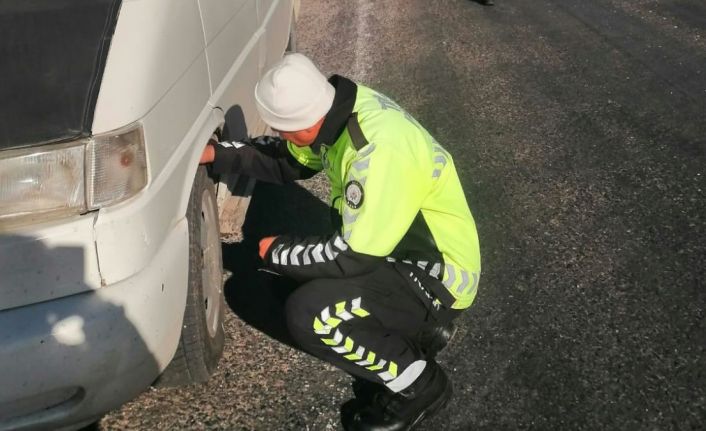 Konya’nın Bozkır ilçesinde yolcu ve sürücülerin can ve mal güvenliğinin sağlanması amacıyla kış lastiği denetimleri yapılıyor.