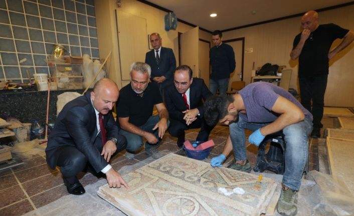 Amasya Valisi Dr. Osman Varol, Amasya Müzesi’nde teşhir edilmesi için insiyatif aldıkları mozaiğin hazırlık çalışmalarını yerinde inceledi.