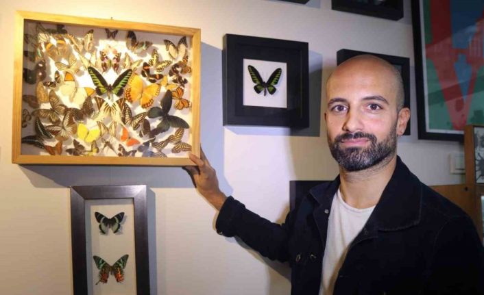İzmir’de koleksiyoner Şenol Çelik, 9 yaşında izlediği çizgi filmden esinlenip topladığı, aralarında nadir türlerin de bulunduğu yaklaşık 3 bin kelebeği özel yöntemlerle kurutarak atölyesinde sergiliyor.