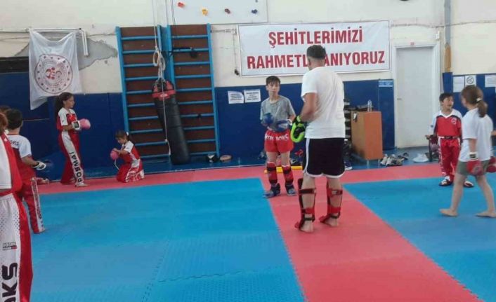 Kütahya’nın Gediz ilçesinden Türkiye Şampiyonasına katılacak olan 4 kick boks sporcusu antrenörleri eşliğinde çalışmalarını sürdürüyor.