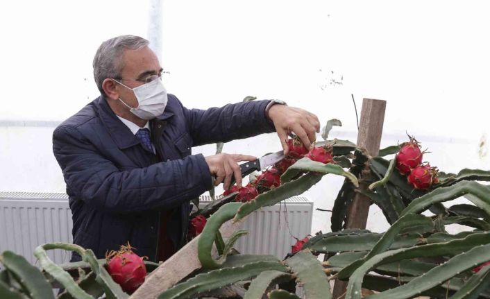 Kütahya Hekim Sinan Tıbbi Bitkiler Merkezi’nde örnek amaçlı yetiştirilen ejder meyvesi ve muz hasadı gerçekleştirildi. Belediye Başkanı Prof. Dr. Alim Işık, hasadı yapılan meyveler ve merkez hakkında bilgi aldı.