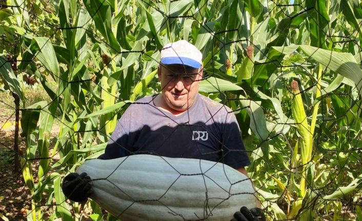 Kütahya’nın Hisarcık ilçesinde Erdal Baş isimli üretici ata tohumundan dikim yaptığı tarlasında yaklaşık 30 kilo dev bal kabağı yetiştirdi.