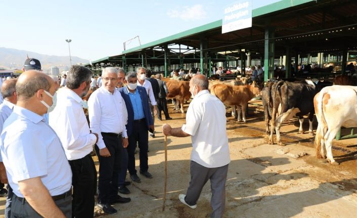 Malatya’nın Battalgazi Belediye Başkanı Osman Güder, Kurban Bayramı öncesi kurbanlık satışı yapılan Canlı Hayvan Pazarını ziyaret ederek, alıcı ve satıcılarla sohbet etti.
