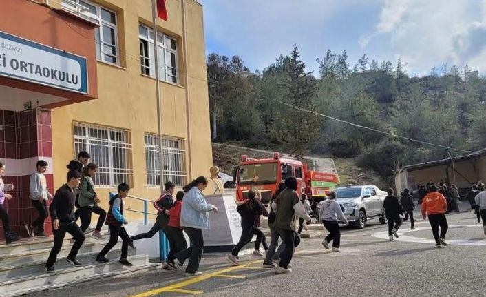 Mersin’in Bozyazı ilçesi Gazi Ortaokulu’nda Sivil Savunma Haftası etkinlikleri çerçevesinde deprem, yangın ve tahliye tatbikatı gerçekleştirildi.