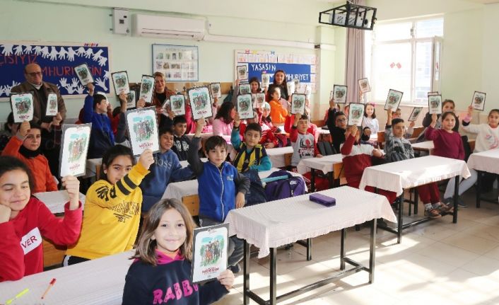 Toroslar Belediyesi, ilçedeki okullarda öğrenim gören çocuklara, Mersin’in düşman işgalinden kurtuluşunu anlatan çizgi roman kitabı dağıtıyor.