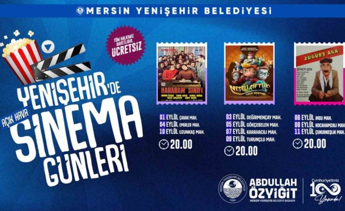 Daha önce mahallelere çocuk tiyatrosunu taşıyan ve gezici sinema günleri düzenleyen Mersin Yenişehir Belediyesi, kırsal mahallelere bu yıl da beyaz perde kuruyor. Hababam Sınıfı, Züğürt Ağa ve Neşeli Çiftlik filmleri ile Yenişehirliler hep birlikte açık havada keyifli bir yaz akşamı geçirme fırsatı yakalarken, Yenişehir Belediyesi filmleri izlemeye gelen vatandaşlara gazoz ve patlamış mısır da ikram edecek.