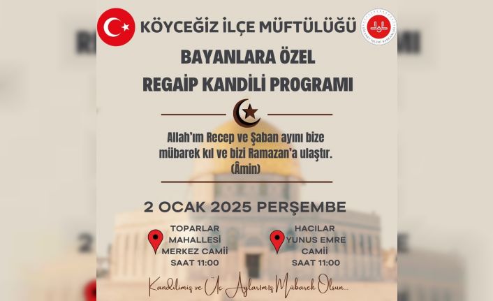 Muğla’nın Köyceğiz ilçesinde Regaip Kandili nedeniyle özel programlar gerçekleştirilecek.