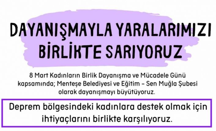 Menteşe Belediyesi ve Eğitim ve Bilim Emekçileri Sendikası Muğla Şubesi, 8 Mart Dünya Kadınlar Günü dolayısıyla önemli bir dayanışma kampanyası başlattı. Kampanyanın amacı, deprem bölgesindeki kadınların hijyen ve temel gıda ihtiyaçlarını karşılamak.