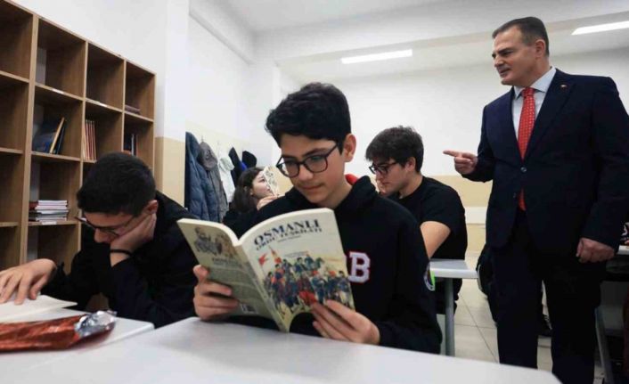 Türkiye Odalar ve Borsalar Birliği Fen Lisesi 9/C sınıfında "Bir Kitap, Bir İnsan" konulu derse katılan Vali Dr. İdris Akbıyık, öğrencilere kitap okumanın öneminden bahsetti.