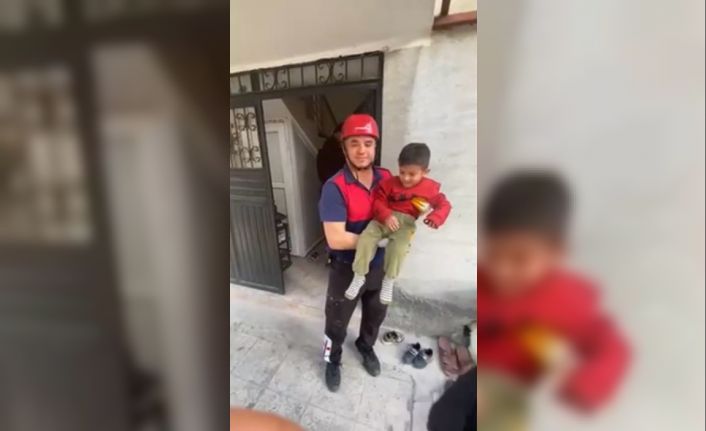 Osmaniye’de, evinde oyun oynarken dış kapısını içeriden kilitleyip açamayan küçük çocuğu itfaiye ekipleri balkondan girerek dışarı çıkardı.