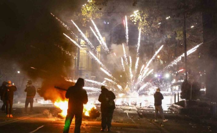 Gürcistan’da hükümetin AB’ye katılım müzakerelerini 2028’e kadar durdurma kararına karşı düzenlenen protestolar 5. günde devam etti. Başkent Tiflis’in Şota Rustaveli Caddesi’ndeki parlamento önünde akşam saatlerinde başlayan protesto, göstericilerin binaya havai fişek ve farklı maddeler fırlatmasıyla bir kez daha çatışmaya dönüştü. Polis tazyikli su ve göz yaşartıcı gazla protestoculara müdahale etti. Parlamento binasından en az 400 metre uzaklaştırılan protestocular, farklı caddelere dağıldı. Kısa süre sonra tekrar Şota Rustaveli Caddesi’ne dönen protestocular, bu kez çöp konteynerleri ve sandalyelerle barikatlar kurdu, polise havai fişeklerle saldırdı. Gece saatlerinde şiddetli çatışmalar yaşanırken, onlarca kişi yaralandı, bazı göstericiler gözaltına alındı. Polisin tazyikli su, göz yaşartıcı gaz ve gaz bombalı müdahalesine rağmen gösteri sabaha kadar devam etti. Sabah saatlerinde Cumhuriyet Meydanı’nda bir araya gelen protestocular, polisin müdahalesiyle İlya Çavçavadze Bulvarı’na, ardından Özgürlük Meydanı’na geçti. İçişleri Bakanlığından yapılan açıklamada, 34 göstericinin gözaltına alındığı, 12 polisin ise yaralandığını belirtildi.