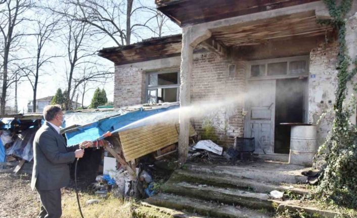 Belediye başkanı kolları sıvayıp, kahverengi kokarca ilaçlamasına katıldı