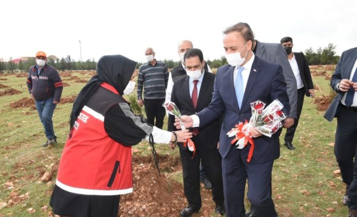 Şanlıurfa Valisi Abdullah Erin, Aile, Çalışma ve Sosyal Hizmetler İl Müdürlüğü tarafından Tarım ve Orman İl Müdürlüğü işbirliğinde 8 Mart Dünya Kadınlar Günü çerçevesinde düzenlenen fidan dikim etkinliğine katıldı.