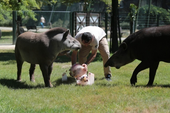 Sıcaktan bunalan hayvanlara buzlu meyve