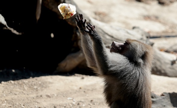 Sıcaktan bunalan hayvanlara buzlu meyve