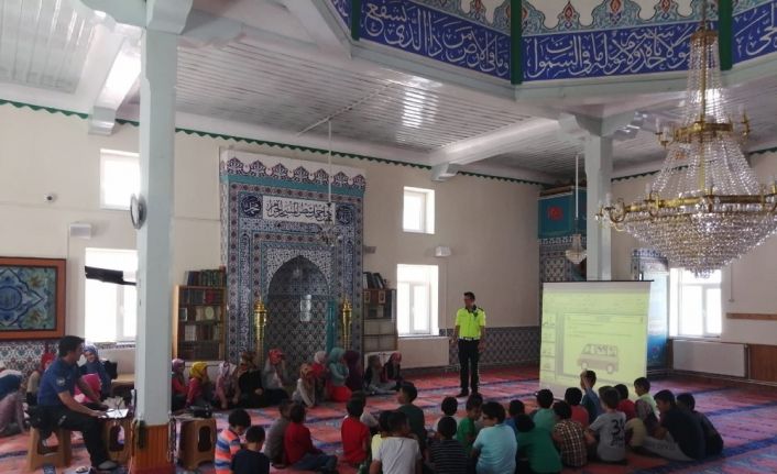 Sivas İmranlı ilçe Emniyet Amirliği tarafından ilçe müftülüğü yaz kuran kursunda eğitim gören öğrencilere trafik eğitimi verildi.