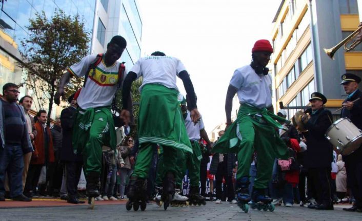 Trabzon’da yarın başlayacak olan ve Türkiye’nin ilk kez ev sahipliği yapacağı Paten Futbolu Dünya Kupası’na katılan sporcular, kortej yürüyüşü yaptı. Trabzon Büyükşehir Belediyesi bando takımı konseriyle eğlenen sporcular, patenlerle dans etti. Çevredeki vatandaşların ilgisini çeken kortej yürüyüşü adeta karnaval havası estirdi. Trabzon Büyükşehir Belediye Başkanı Ahmet Metin Genç’in de katıldığı kortej yürüyüşü Kahramanmaraş Caddesi’nden başlayıp, 15 Temmuz Şehitler ve Hürriyet Parkı’nda sona erdi. Yürüyüşte ayrıca Dünya Paten Futbolu Federasyonu Başkanı Mehdi Salman Pour, Paten Futbolu Türkiye Temsilcisi Sayim Adanur ile çok sayıda sporcu yer aldı.