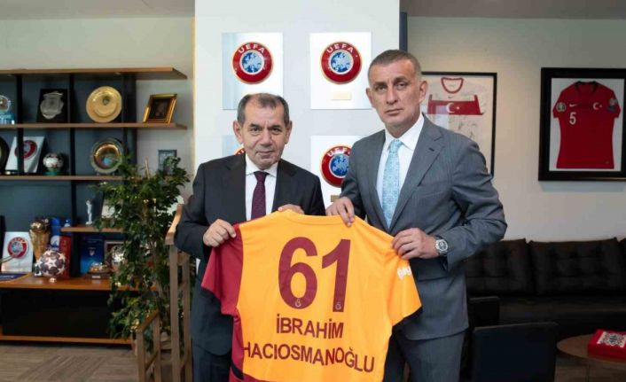 Ziyaretin sonunda TFF Başkanı Hacıosmanoğlu, Dursun Özbek’e üzerinde isminin yazılı olduğu bir A Milli Takım forması takdim ederken, Özbek de Hacıosmanoğlu’na üzerinde isminin yazılı olduğu bir Galatasaray forması hediye etti.